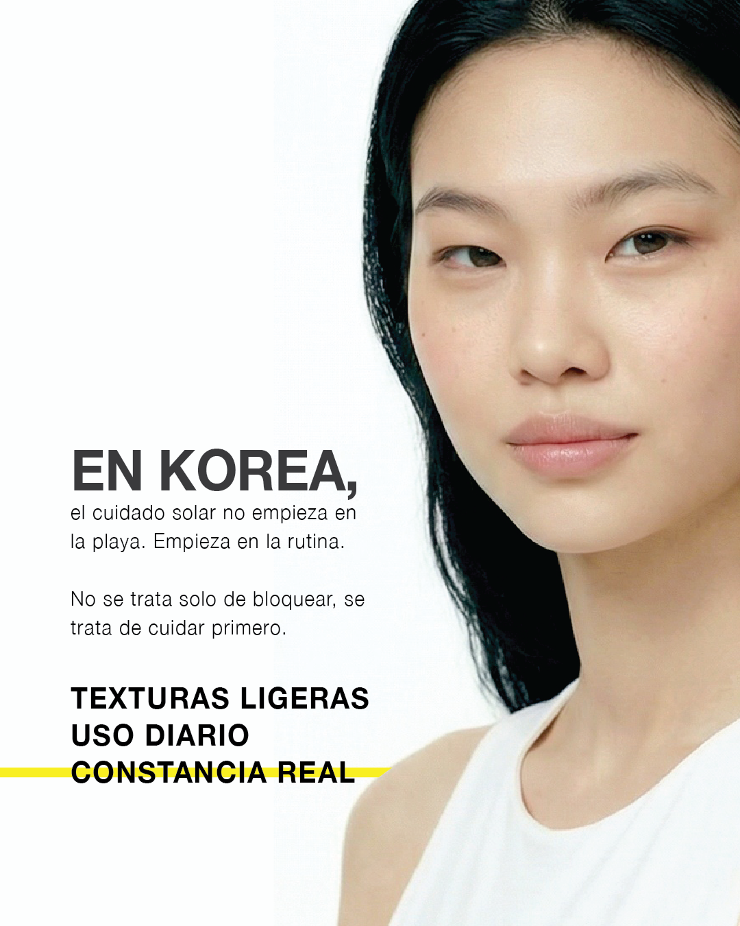 Sensación segunda piel: texturas ligeras, sin efecto blanco, sin grasa, protección solar que se siente fácil y agradable, no una tarea.